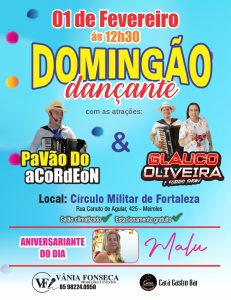 DOMINGÃO DANÇANTE 01/02/2026 Sem categoria DOMINGÃO DANÇANTE 01/02/2026 Ismael 30 de janeiro, 2026 Leia Mais